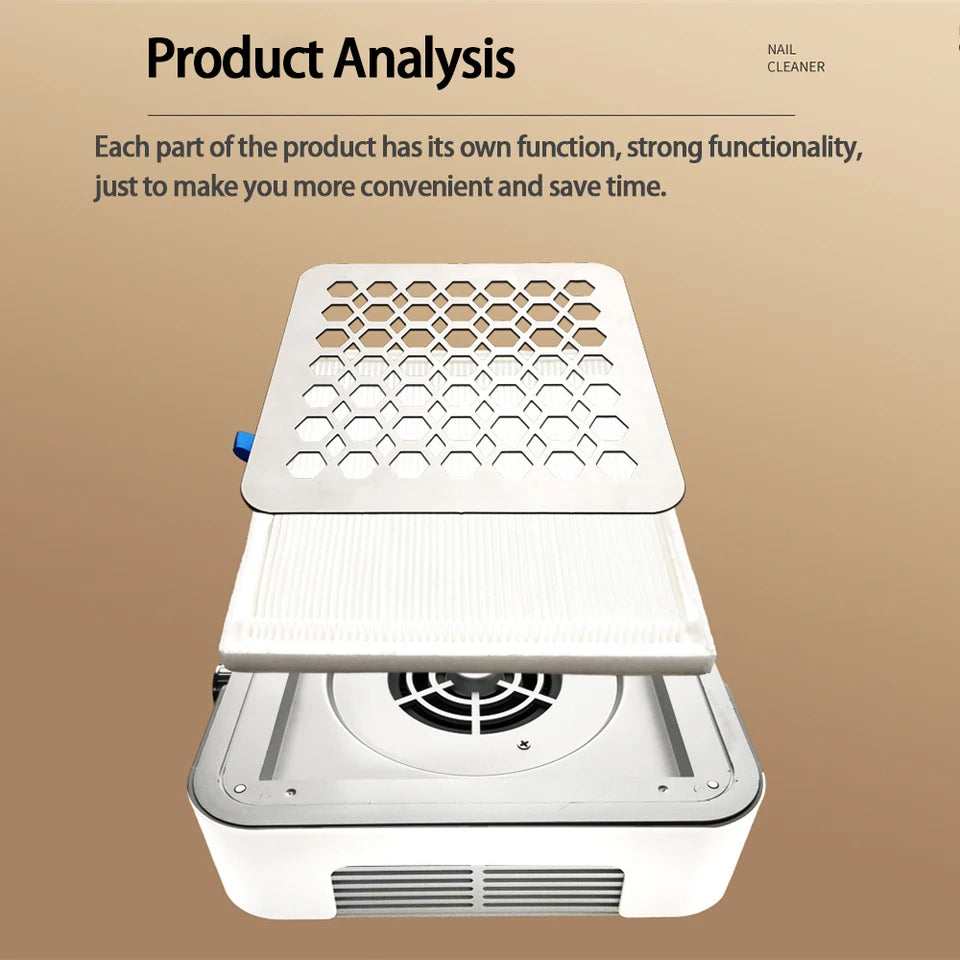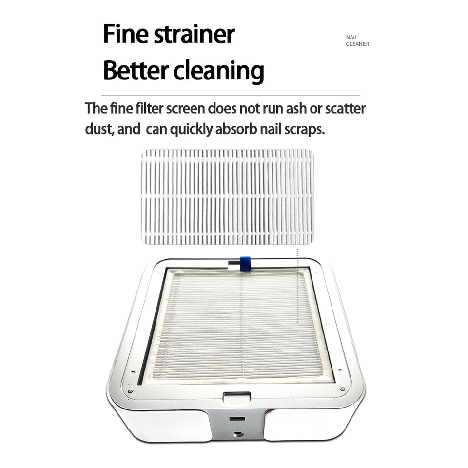Grâce à son filtre fin, l'ASPIRATEUR ASPIRATEUR 60W peut absorber rapidement les copeaux d'ongles sans les disperser, assurant un environnement de travail propre et ordonné.