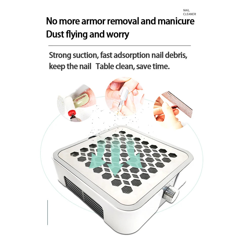 L'ASPIRATEUR ASPIREUR 60W offre une puissante aspiration pour un nettoyage rapide et efficace des débris d'ongles, permettant de maintenir le plan de travail des ongles propre en un rien de temps.