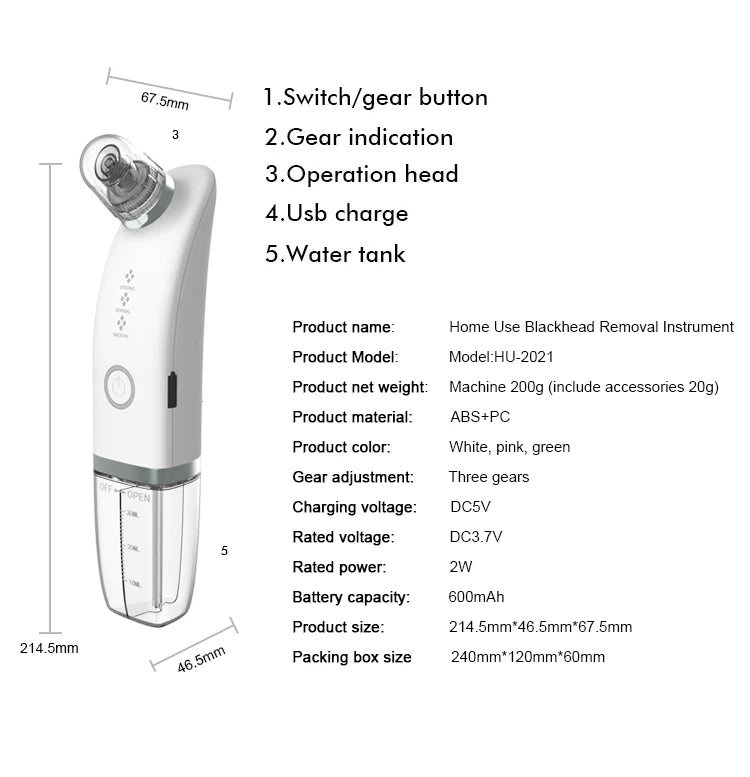 Avec une batterie rechargeable de 600mAh, l'ASPIRATEUR PORES EX offre une utilisation prolongée, vous permettant de profiter de séances de soin du visage sans interruption.