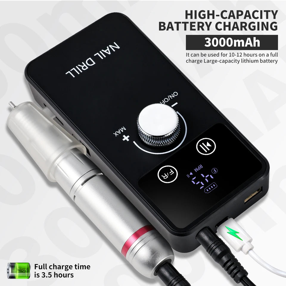 Avec une capacité de batterie de 2600mAh, la PONCEUSES NAIL DRILL V5 ex peut fonctionner jusqu'à 10 heures après seulement 2 heures de charge, assurant une utilisation continue sans interruption pour des séances de manucure prolongées.