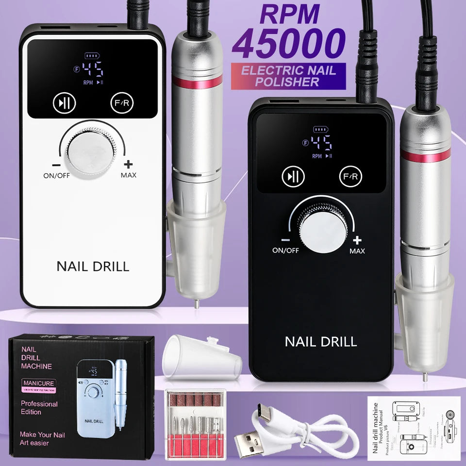 La PONCEUSES NAIL DRILL V5 ex offre une vitesse de rotation allant jusqu'à 45000 tr/min, permettant un travail rapide et efficace sur les ongles sans effort supplémentaire.