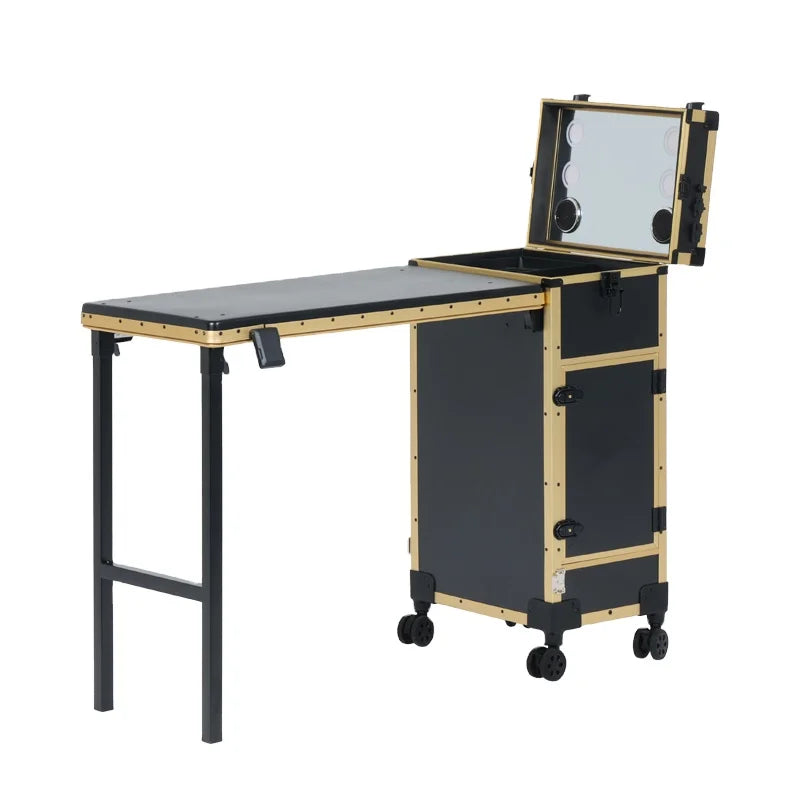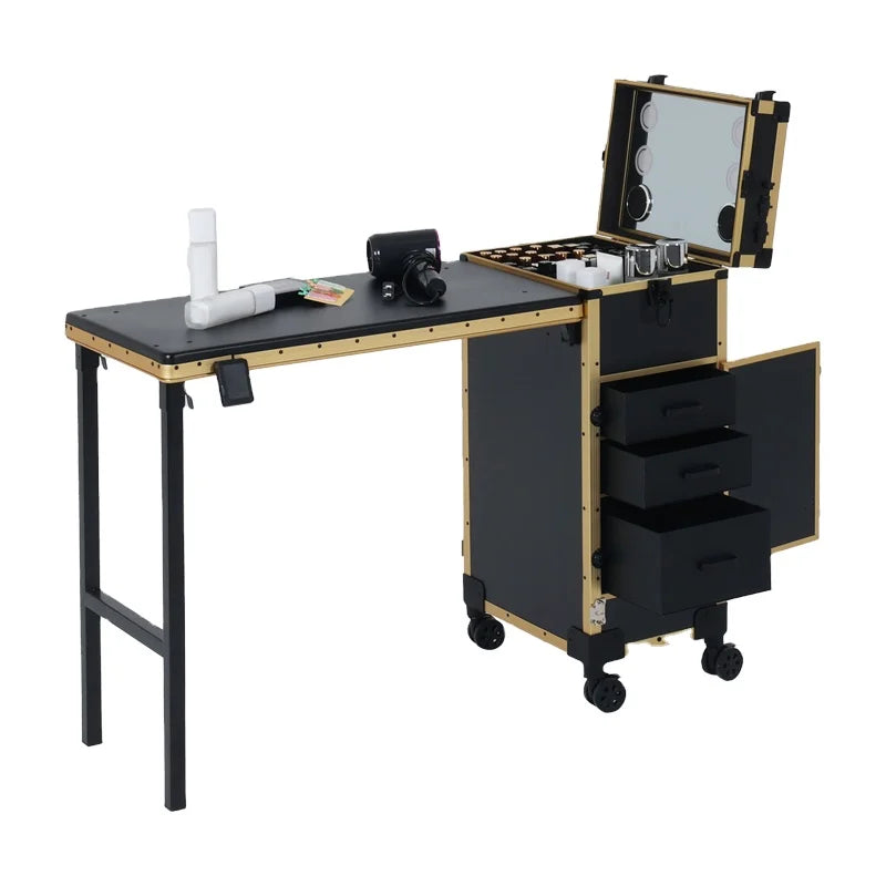La TABLE MANUCURE EN MALLETTE EX offre une polyvalence exceptionnelle, pouvant être utilisée comme table à ongles, mallette de maquillage verrouillable ou valise de cosmétiques. Un produit polyvalent pour divers besoins.