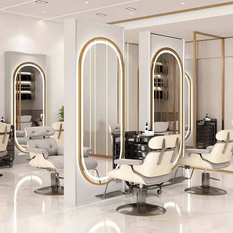 Grâce à sa portabilité, ce miroir de coiffure peut être déplacé facilement pour s'adapter aux besoins changeants du salon, offrant une grande flexibilité d'aménagement.
