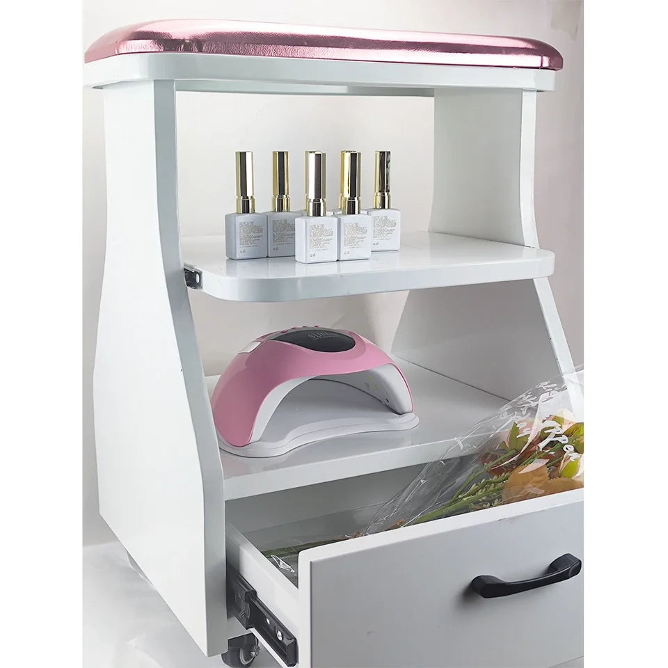 Doté d'un design pratique et fonctionnel, ce chariot pour salon de manucure offre une solution efficace pour organiser les outils de beauté des ongles, facilitant ainsi le travail des professionnels de la beauté.