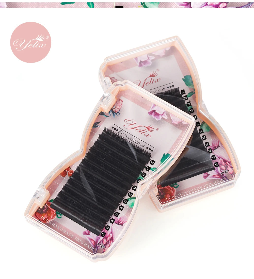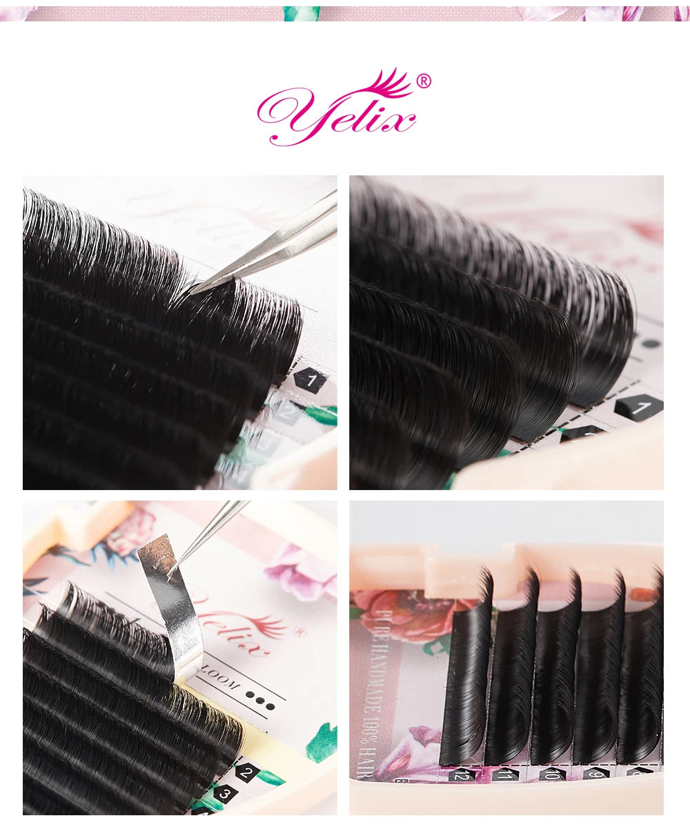 Chaque extension est fabriquée à la main, garantissant une qualité supérieure et une finition impeccable. Ces extensions de cils sont disponibles en plusieurs courbures (B, C, CC, D), pour s'adapter à tous les types de looks et préférences.